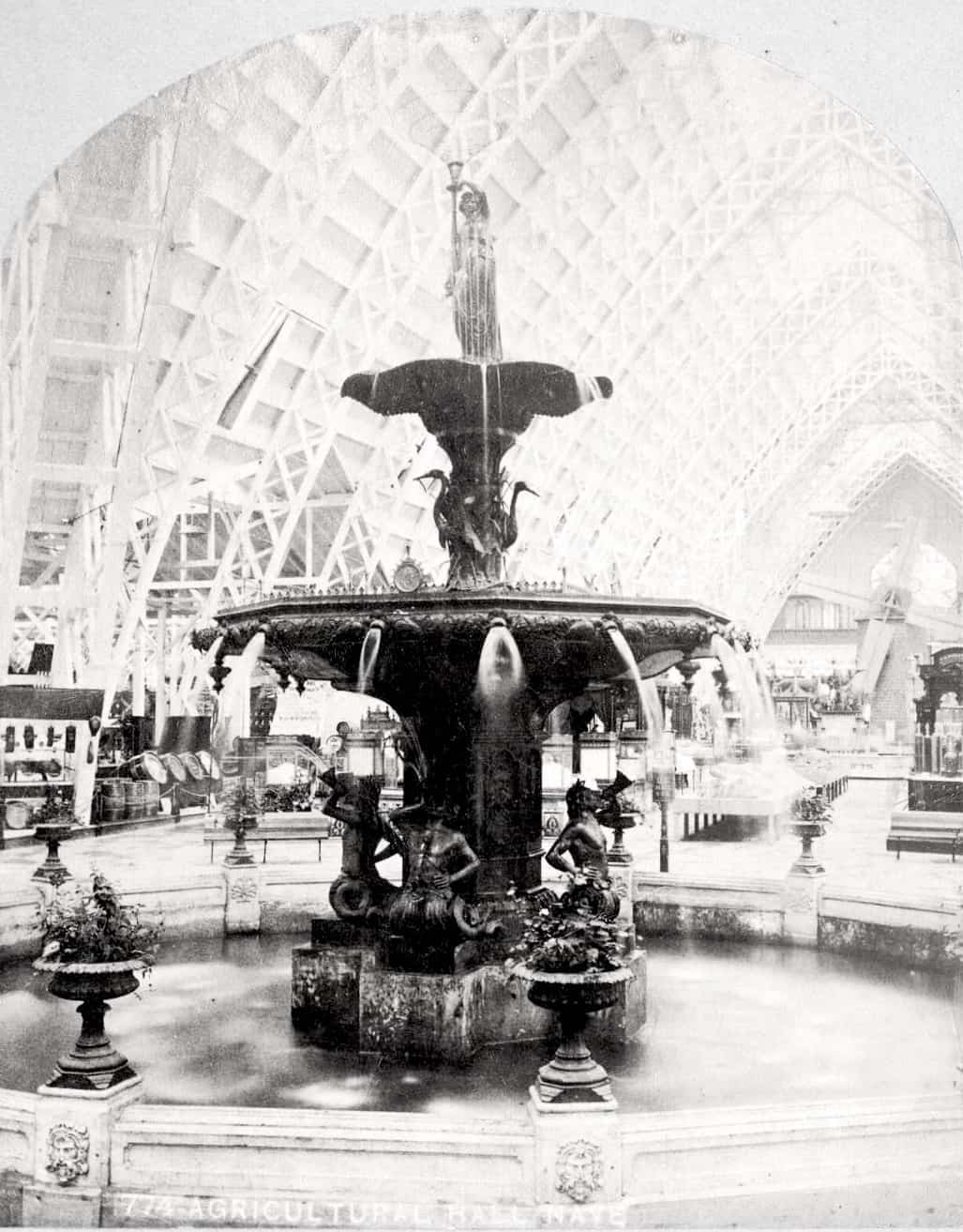 Above left, announcement of new fountain in Leslie’s Weekly. Above right, the fountain was made by the well known James Beebe Company, view at 1876 Philadelphia Centennial Exhibition. The same fountain stands in Savannah, Georgia.